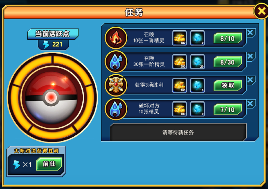 在收集了足够的活跃点后,训练师就可以打开任务左侧的精灵球,领取其中的金币了~